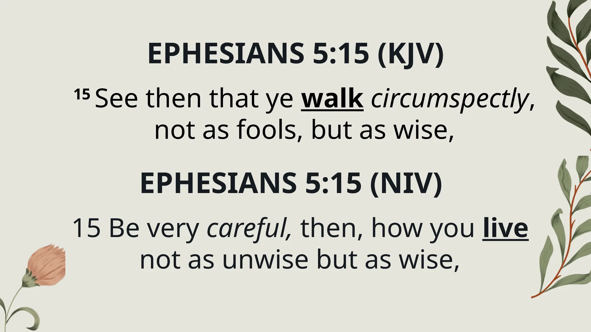15-“그런즉 너희가 어떻게 행할지를 자세히 주의하여 지혜 없는 자 같이 하지 말고